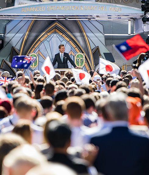 Mr. David Miscavige, Chairman of the Board Religious Technology Center, greeted the more than 2,500 Scientologists from throughout the region who were on hand to celebrate the opening of the new Ideal Advanced Organisation for Australia, New Zealand and Asia.