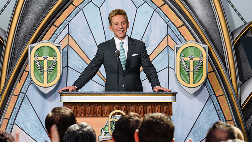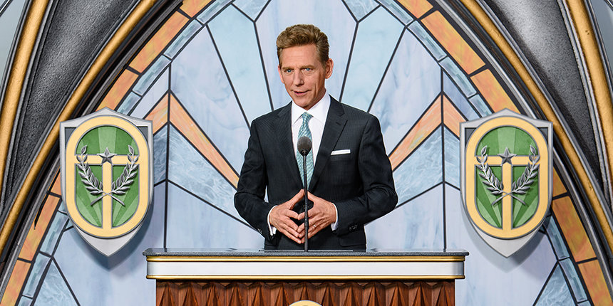 Describing how he “first laid eyes on this arboureal palace nestled at the rim of a eucalyptus wonderland,” Mr. Miscavige said, “the most descriptive phrase beyond ‘mind-blowing’ was, ‘perfectly perfect.’ Well, so too, is the timing of your grand opening.”
