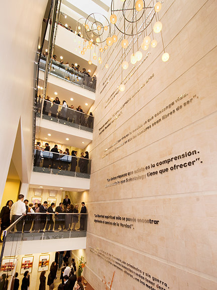 The ceremony marked the conclusion of a full-scale reconstruction and design of Mexico City’s Juarez Building. Directly adjacent to the Fine Arts Palace and neighboring the National Supreme Court, the National Bank and the National Palace, it stands as a six-story contemporary cultural landmark. Now fully reconfigured to accommodate Scientology religious services, the building also includes an extensive Public Information Center with multimedia displays presenting and illustrating Scientology beliefs, the life of its Founder, L. Ron Hubbard, and its many social betterment and outreach programs.