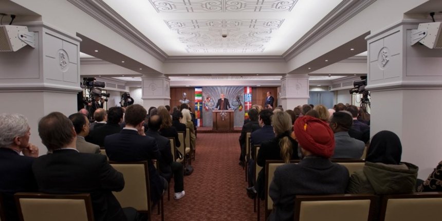 Distinguished guest speakers participating in the dedication included the Honorable Hugo Coveliers, Senator in the Belgian Parliament; Professor Abolfazl Beheshti, Professor of International Relations and Energy Economy at the University of Lille, France; the Honorable Juan Ferreiro, Deputy Director General for Religious Affairs at the Spanish Ministry of Justice; Ms. Katalin Szomor, expert member of the Drugs Commission of the Hungarian Parliament and former National Drug Coordinator; and the Reverend Christopher Vonck, Rector of the Faculty for Comparative Study of Religions at the University of Antwerp.