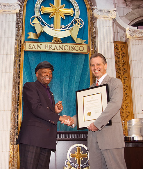 On the occasion, San Francisco Mayor Willie Brown (left) presented the Church with a proclamation commending “its efforts in making the Bay Area a better place for persons of all races, colors, creeds and walks of life.”