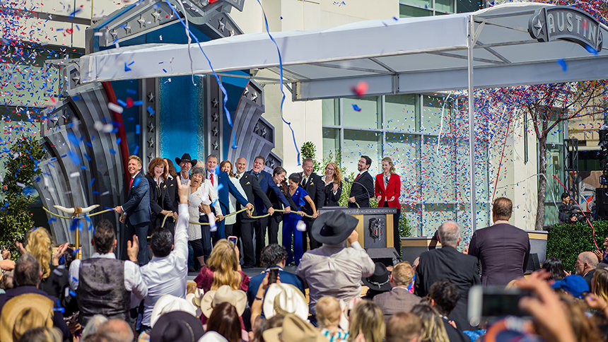 “And today I’ll admit a little Longhorns pride in celebrating another big step in keeping our neighborhood the Best of the Best. Hook ’em Horns!” he told the roaring crowd.