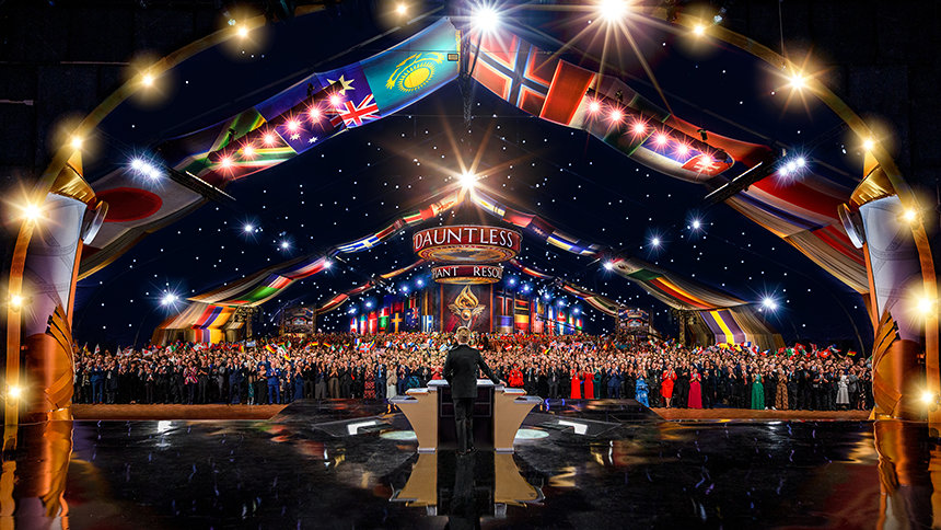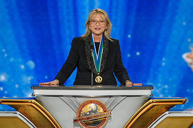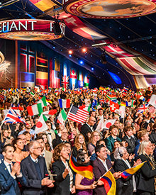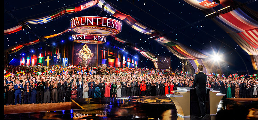 As the global congregation traversed the vibrant ruby-red carpet, they reveled in the enormous Grand Marquee and nearly blew the roof off as Mr. Miscavige arrived onstage to a ground-rumbling ovation lasting minutes. It was an expression not only of admiration for Scientology’s leader, but an acknowledgment of the enormity of the celebration at hand.