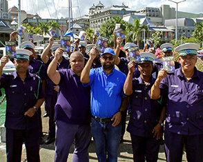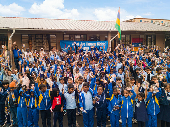 • On the island nation of Mauritius, in answer to videos of police violence, a civic activist leads his newly formed Youth for Human Rights Chapter in raising awareness of the Universal Declaration of Human Rights across the island. Whereupon he meets with a Police Commissioner who welcomed the alliance and instructed his officers to be trained in fundamental human rights, plummeting abuse to all-time lows. As a result, 84 percent of island residents learned of the Universal Declaration of Human Rights, and that burgeoning chapter was added to the United Nations Association of Mauritius.