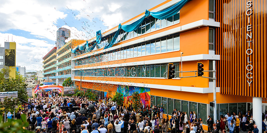 What followed was a watershed event in its own right: the introduction of one final team of executives—from the newly christened Ideal Org of Puerto Rico in San Juan. LRH had long held a deep connection to Puerto Rico—having first traveled there in 1932—and affectionately called it “my dearest island.” On this night, his birthday audience leapt to their feet as vibrant highlights of the Church’s February Grand Opening played across the screens. A bold new Scientology presence now rises along the shores of the sparkling Caribbean Sea.