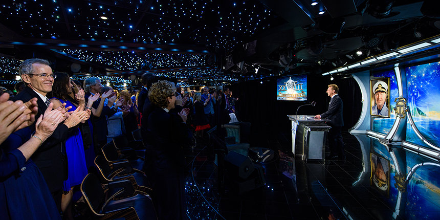 Those aboard for the Maiden Voyage attended a formal event honoring the International Association of Scientologists (IAS), whose mission is to further the social betterment efforts of the religion, support and protect the aims of the religion, and to expand the Church. Among the IAS-supported groups highlighted in the event were: