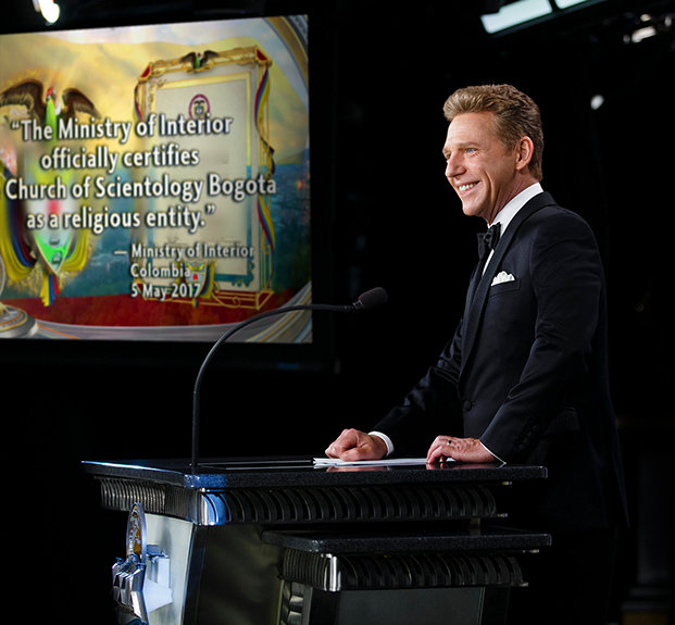 But, even so, that’s not the end of the story. Because, less than a decade after the Freewinds first docked in Cartagena, Mr. Miscavige pronounced the next epic accomplishment: that on the 5th of May, 2017, the nation of Colombia awarded the Church of Scientology full religious recognition.